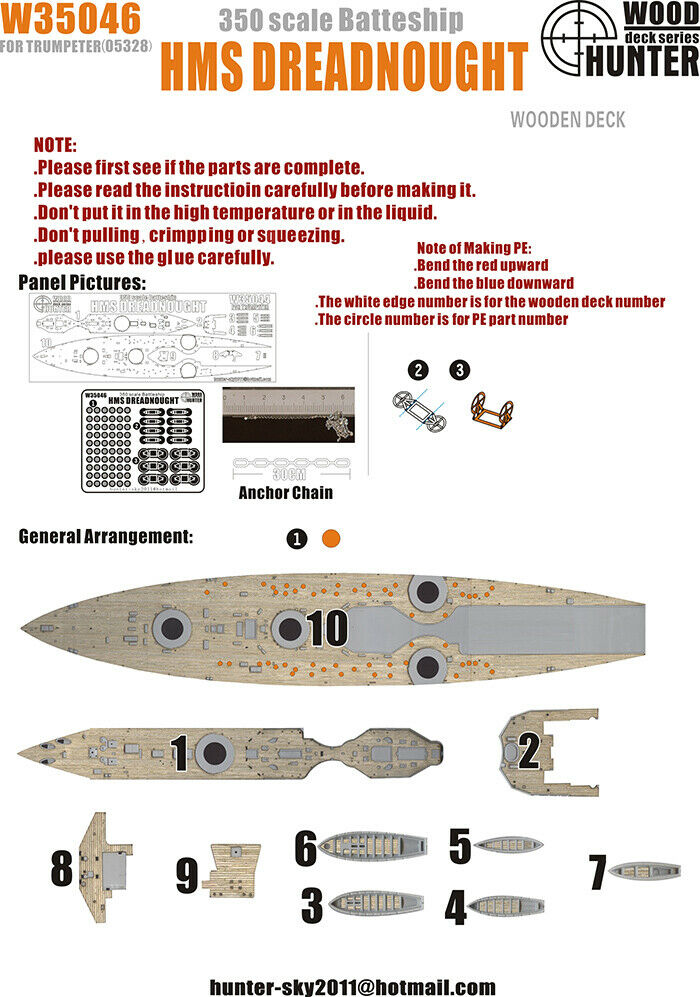 FlyHawk W35046 1/350 WWII Battleship HMS Dreadnought Wooden Deck