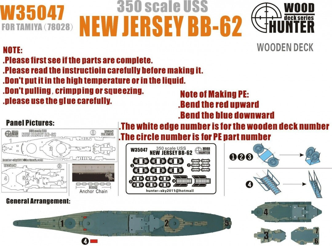 FlyHawk W35047 1/350 USS New Jersey BB-62 Wooden Deck