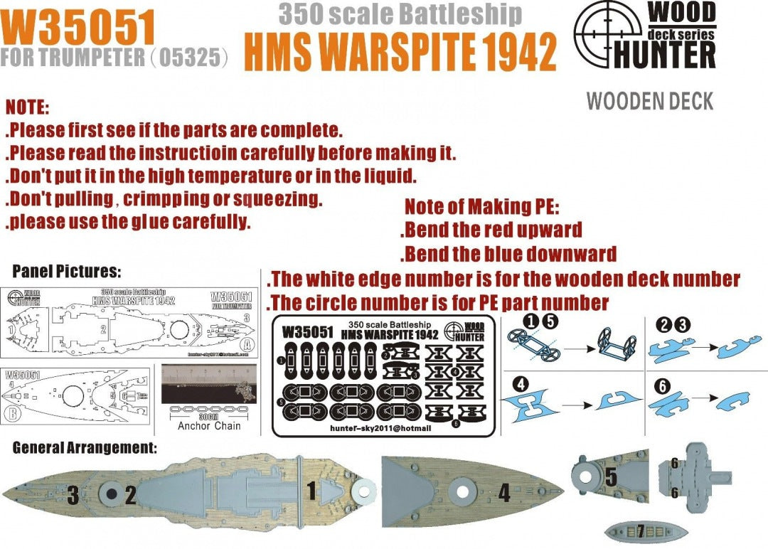 FlyHawk W35051 1/350 WWII Battleship HMS Warspite 1942 Wooden Deck