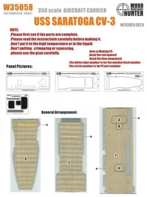 FlyHawk W35058 1/350 AIRCRAFT CARRIER USS SARATOGA CV-3 (FOR TRUMPETER 05607) Wooden Deck